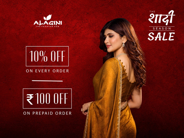 Our sarees are crafted from luxurious fabrics like Georgette, Banarasi, Net, Linen, and Cotton Silk — each thoughtfully detailed with embroidery, zari, or bold prints. From grand celebrations to everyday elegance, Alagini offers designer-style sarees at prices that feel just right — because every woman deserves to feel empowered and seen.