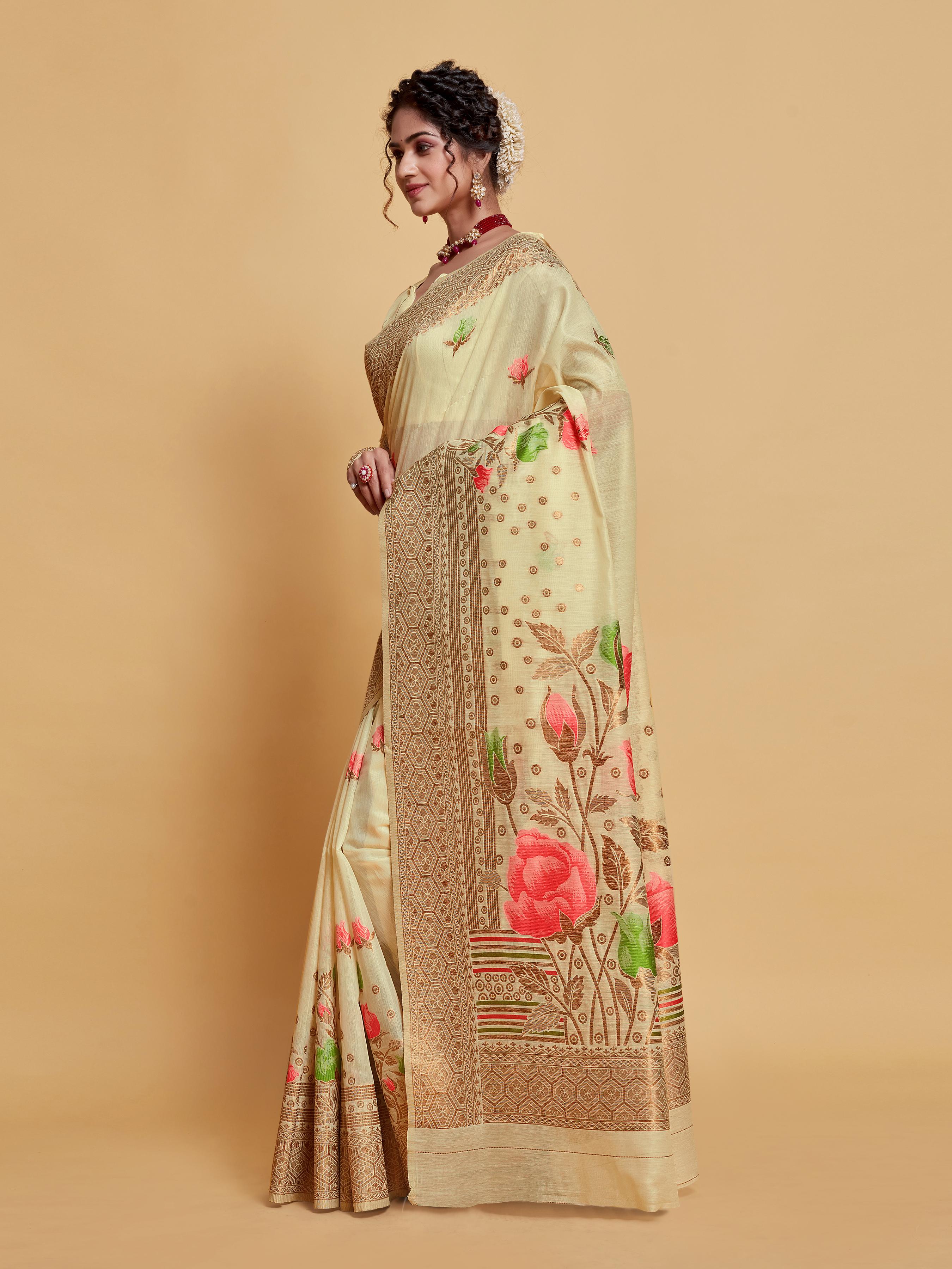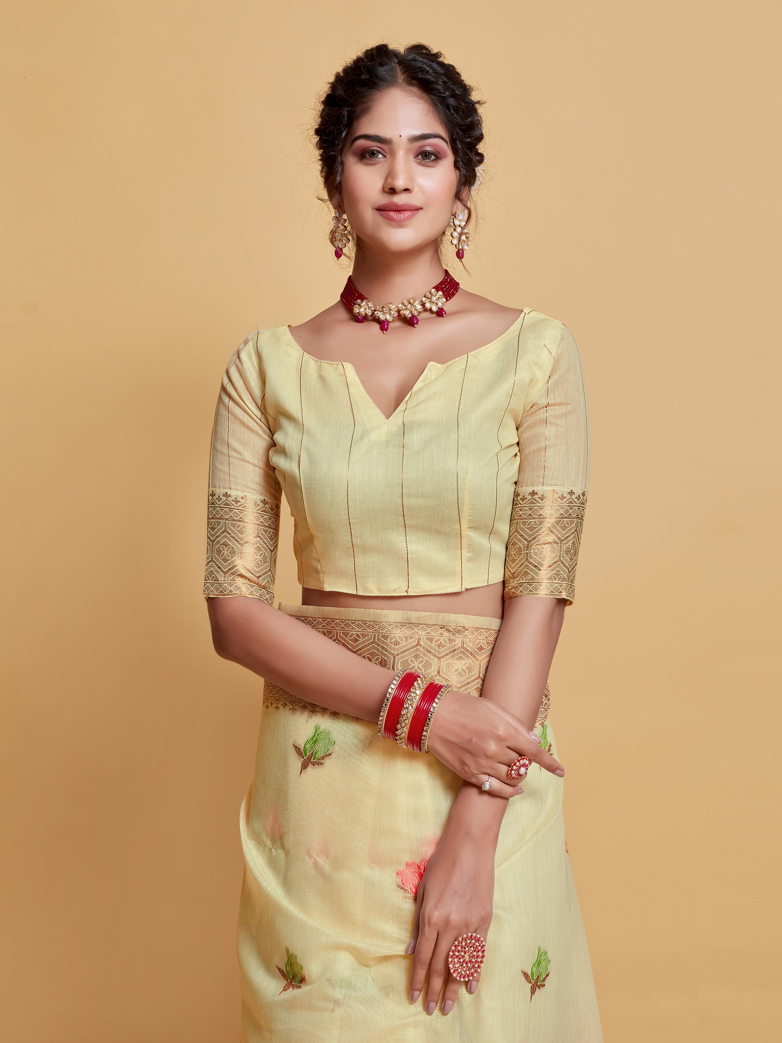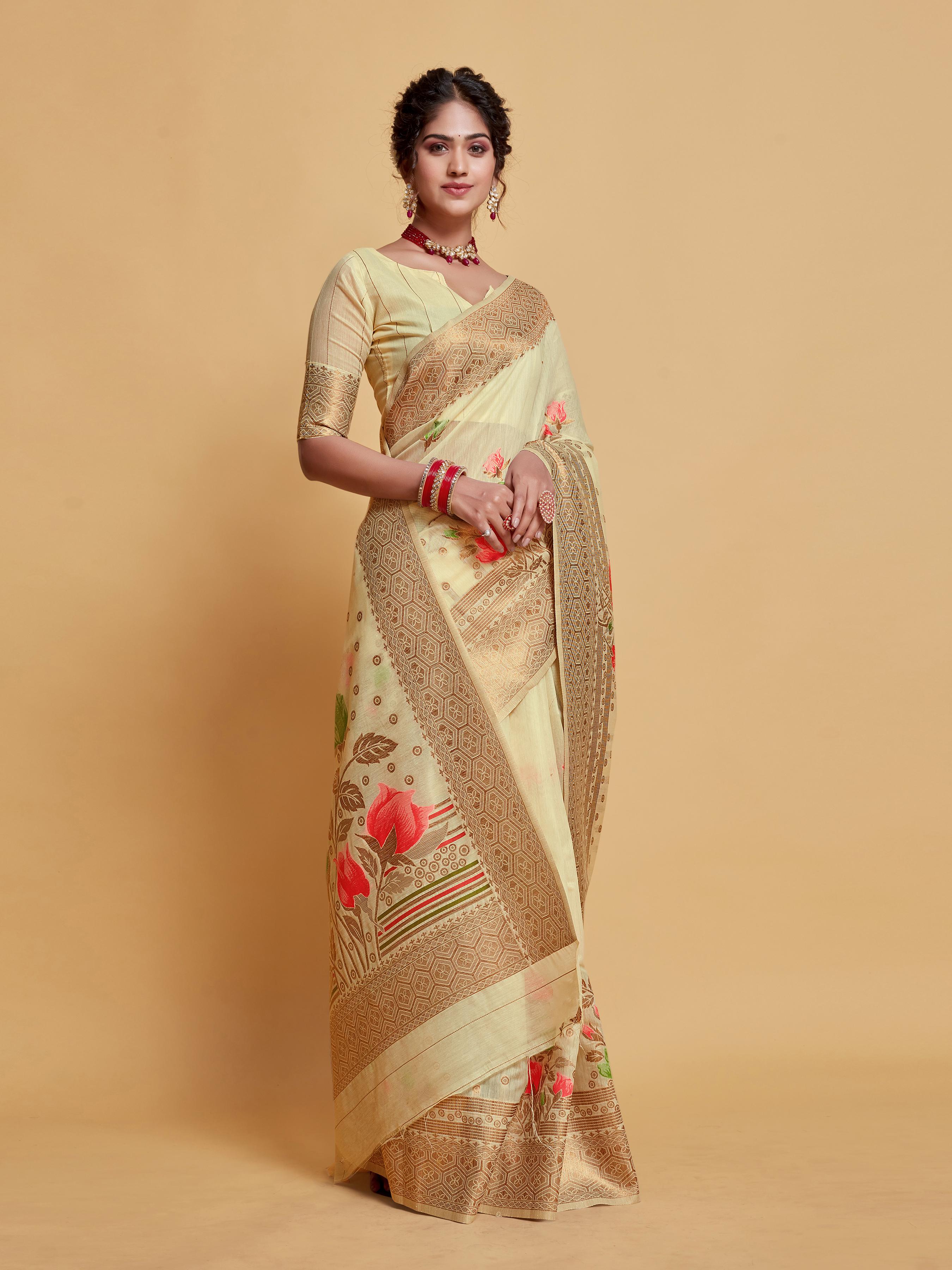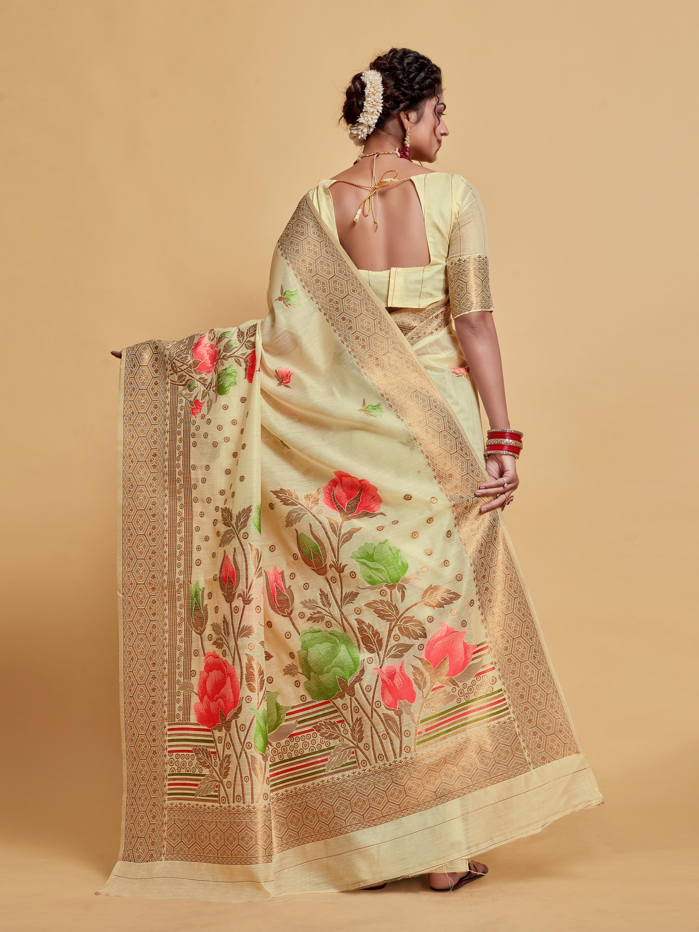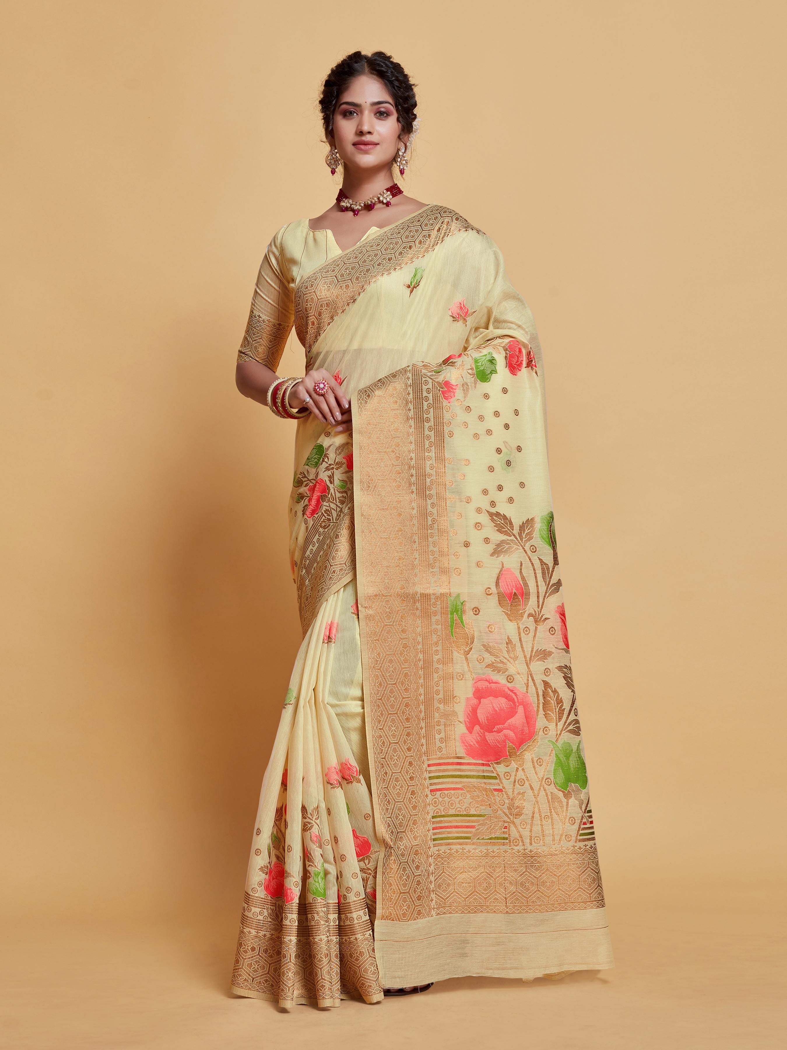 The Floral Woven Soft Cotton Saree is light, comfortable, and stylish. Made from soft cotton, it features beautiful woven floral designs that add charm and elegance. Perfect for daily wear, office, or small celebrations