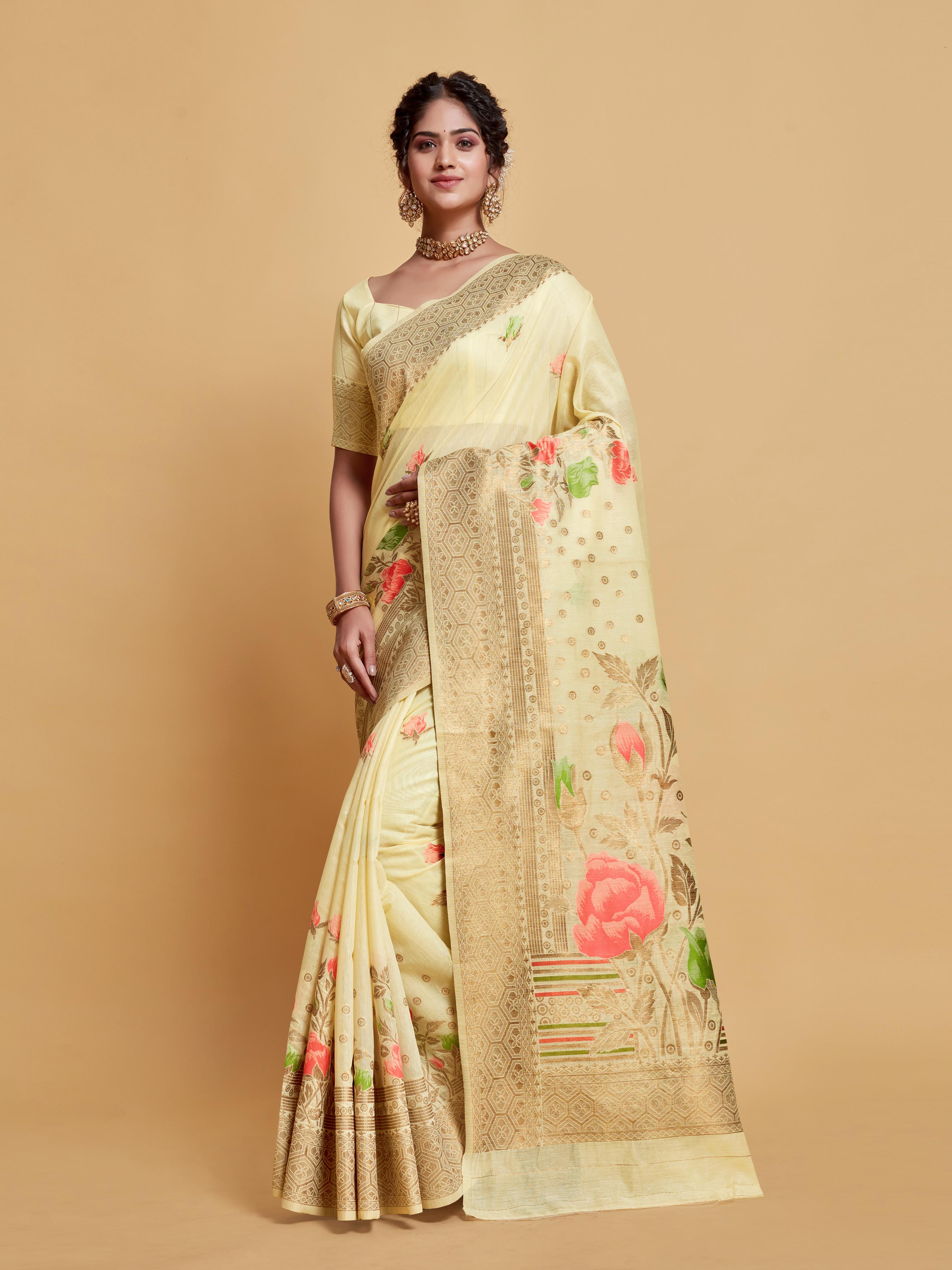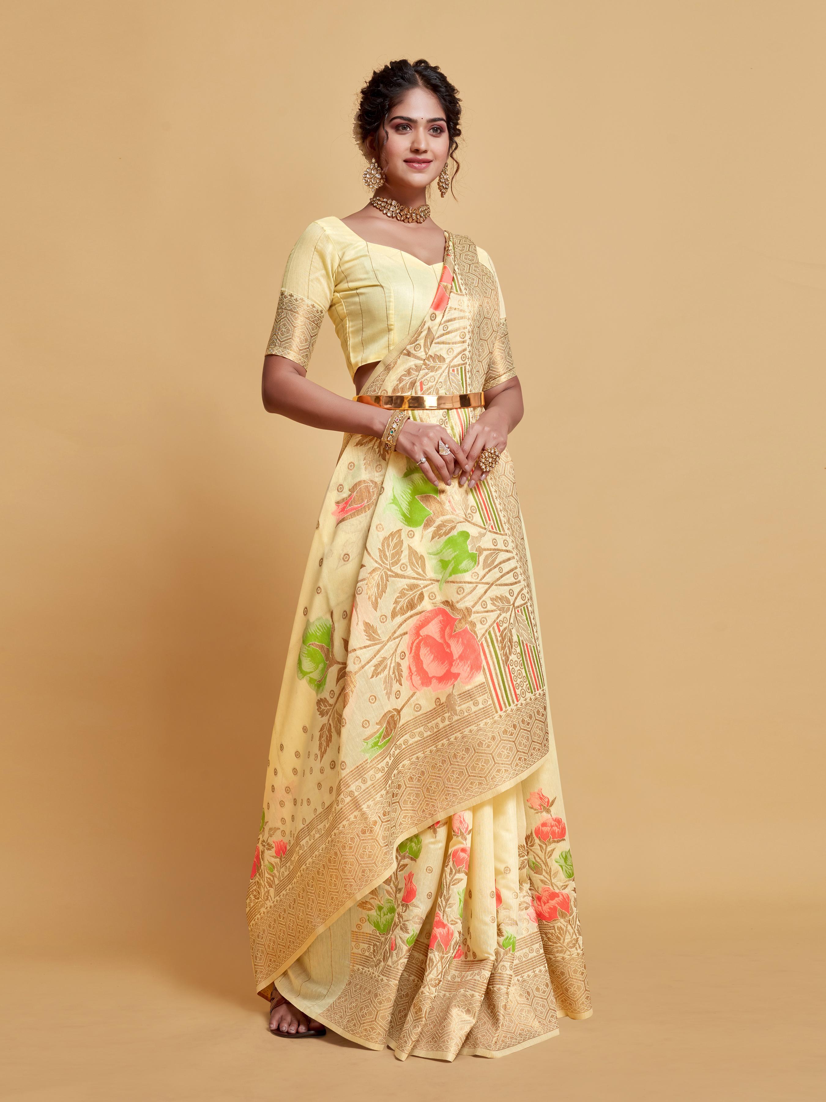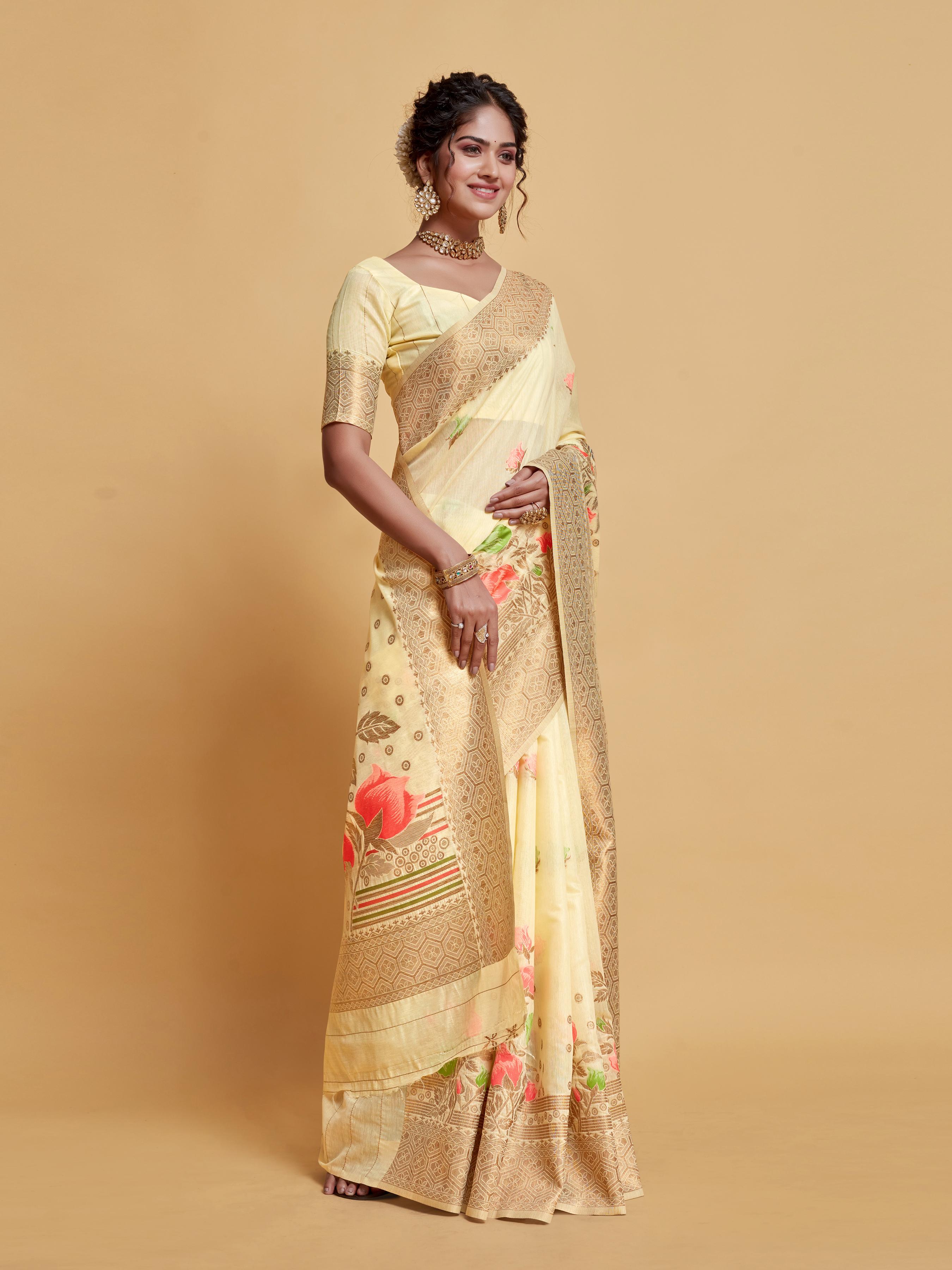 The Floral Woven Soft Cotton Saree is a delightful mix of comfort and style, designed for women who appreciate elegance in simplicity. Made from soft, breathable cotton, this saree ensures all-day comfort perfect for those who love beauty.