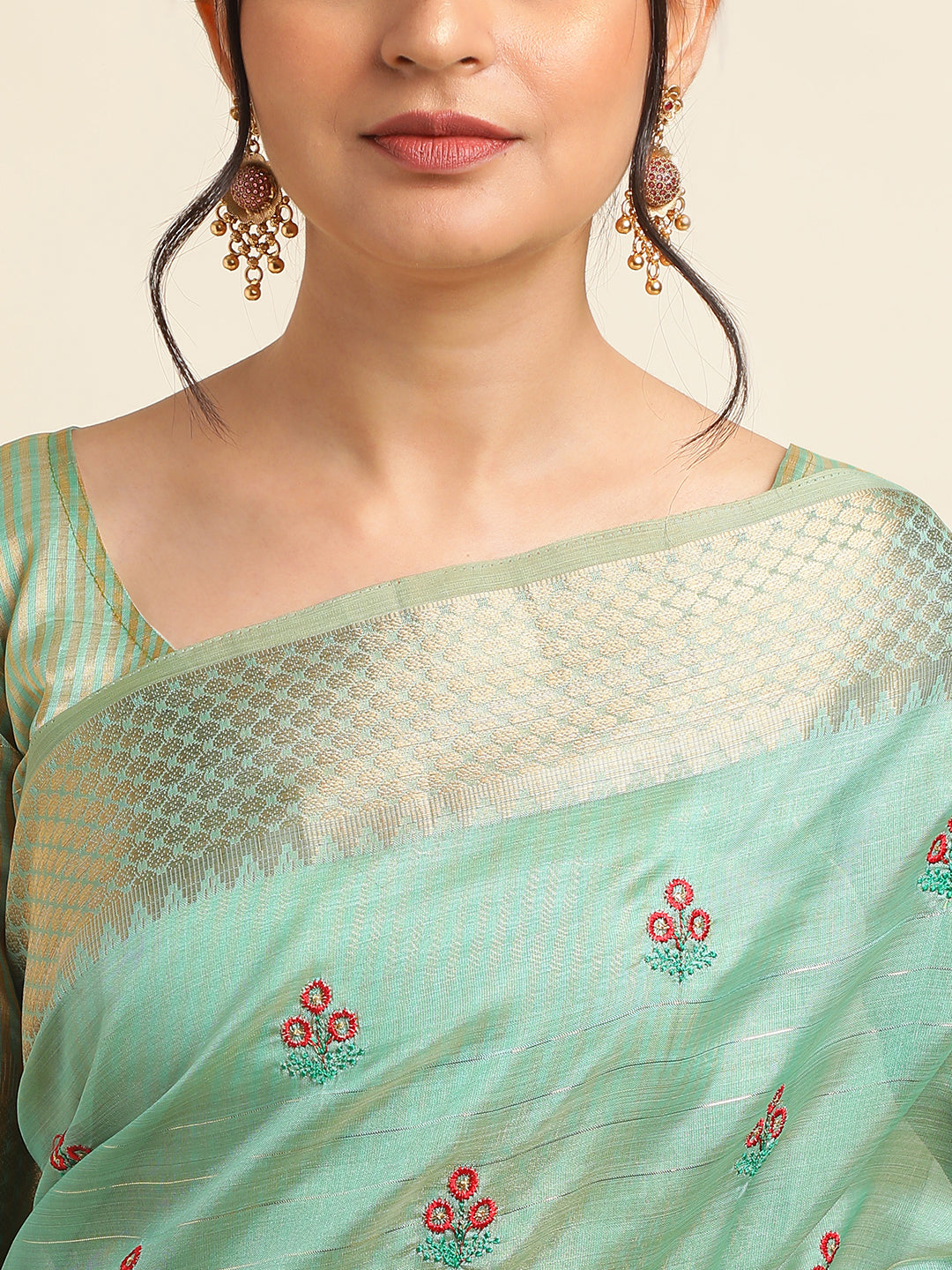 This Banarasi silk saree is beautifully designed with floral embroidery, giving it a royal and elegant look. The soft, rich fabric drapes gracefully, making it perfect for weddings, festivals, and special occasions.