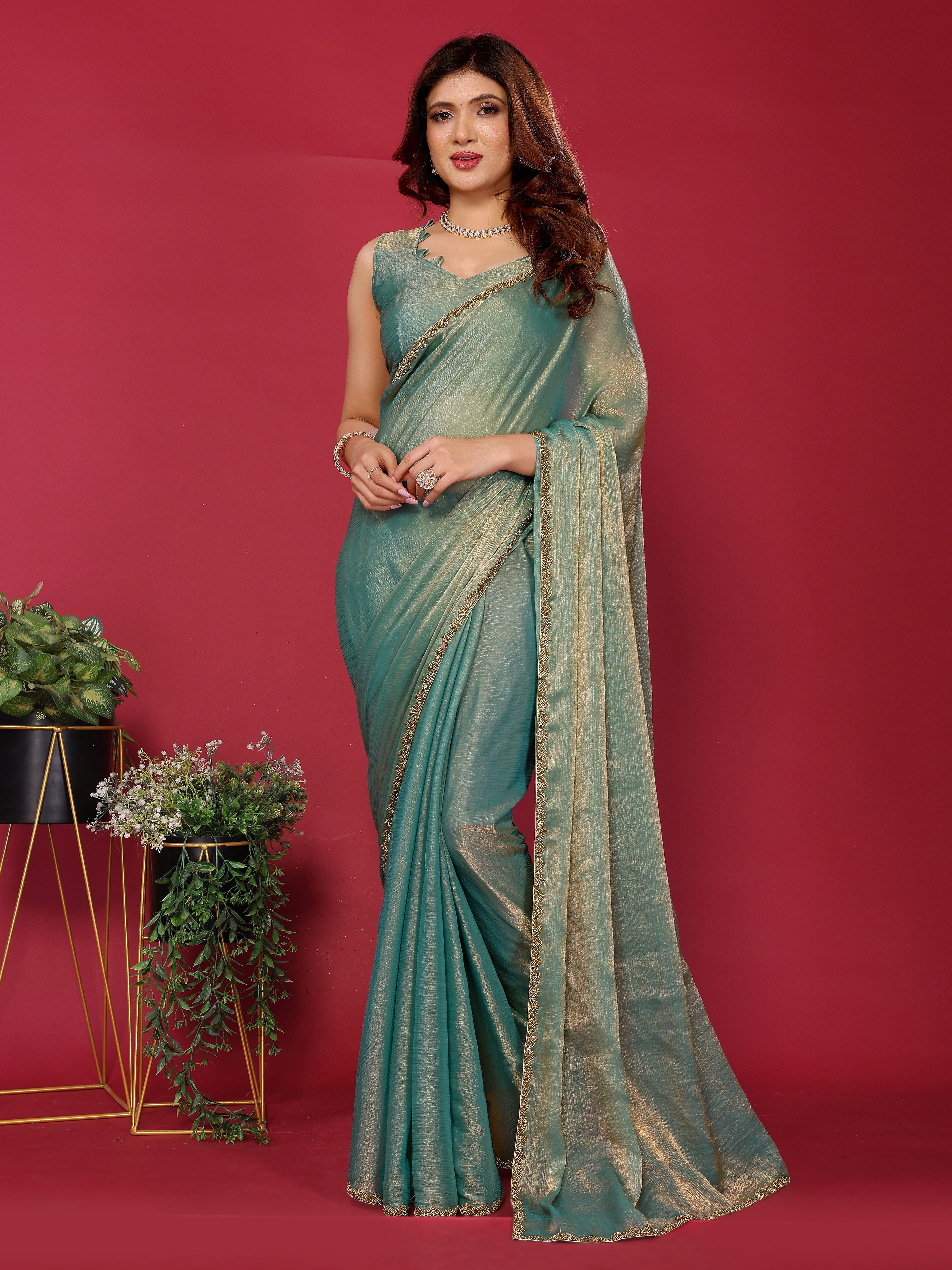 Add festive sparkle to your wardrobe with our Sea Green Satin Silk Handwork Saree, perfect for festive celebrations. Crafted from premium satin silk, it offers a smooth, lustrous drape that enhances your elegance. The intricate handwork detailing brings a blend of tradition and modern style, making it ideal for festive gatherings, parties, and engagement looks in saree.