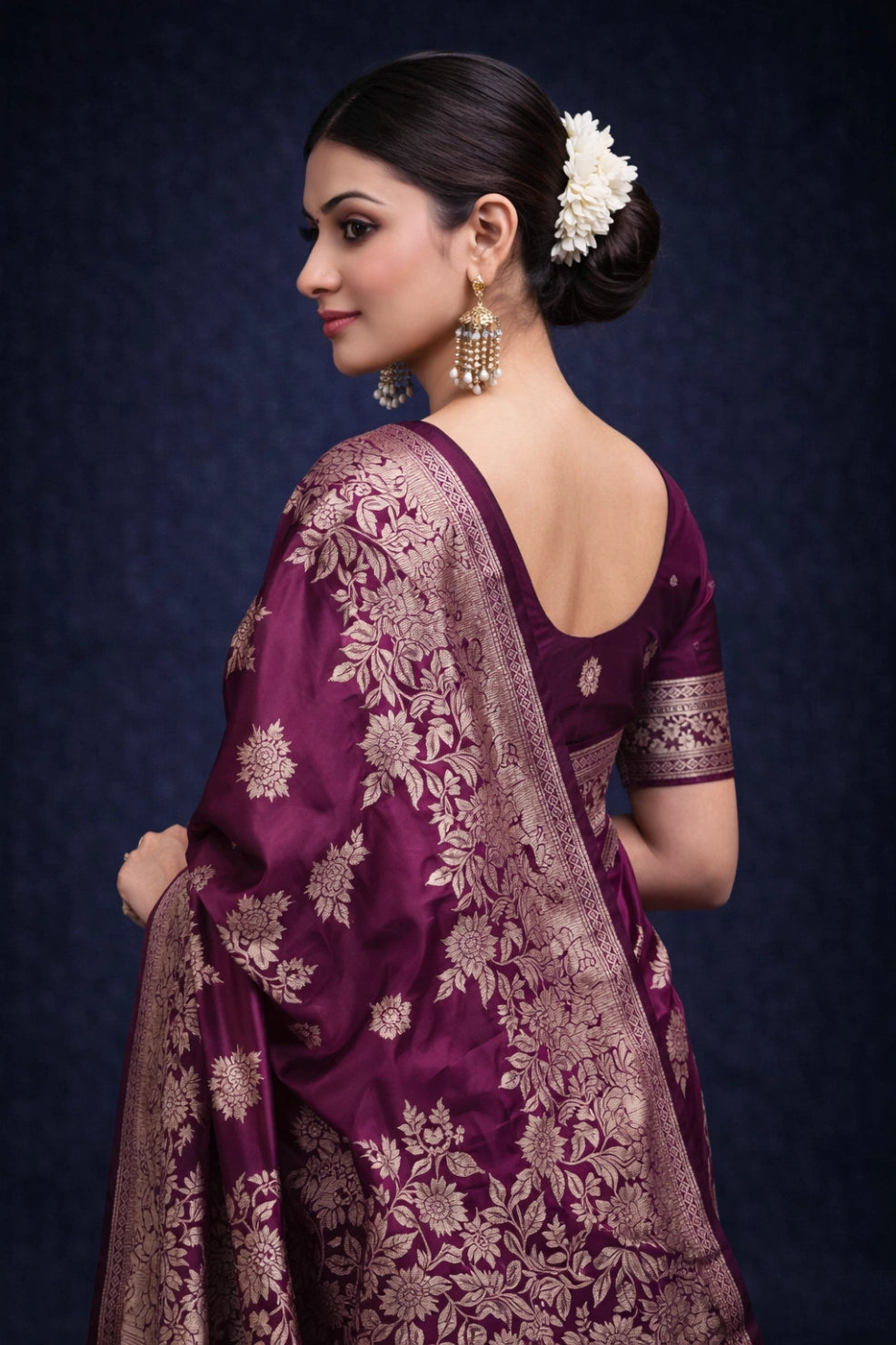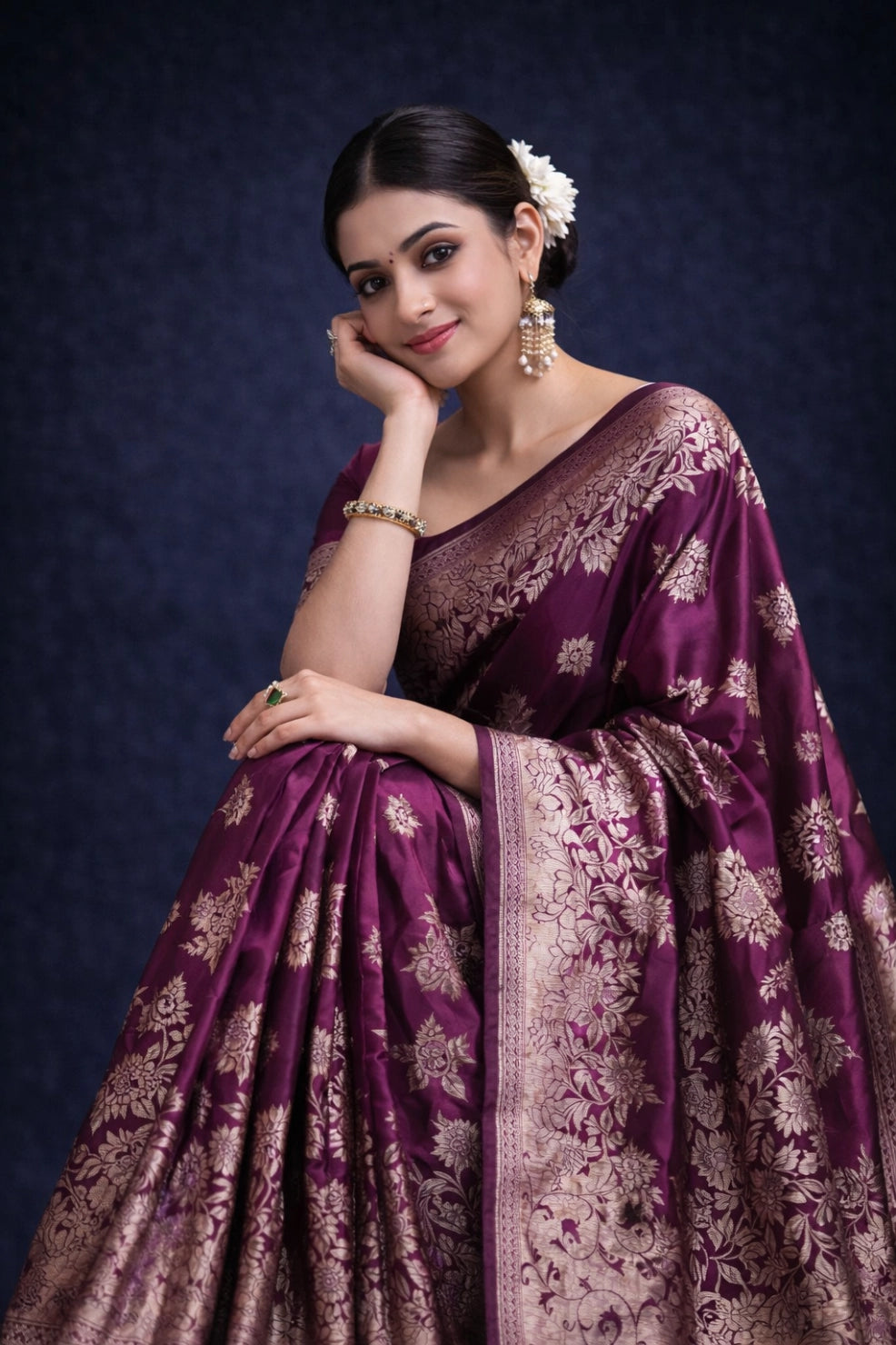 Celebrate tradition with this beautiful Wine Banarasi Silk Saree, designed for festive and Wedding occasions.